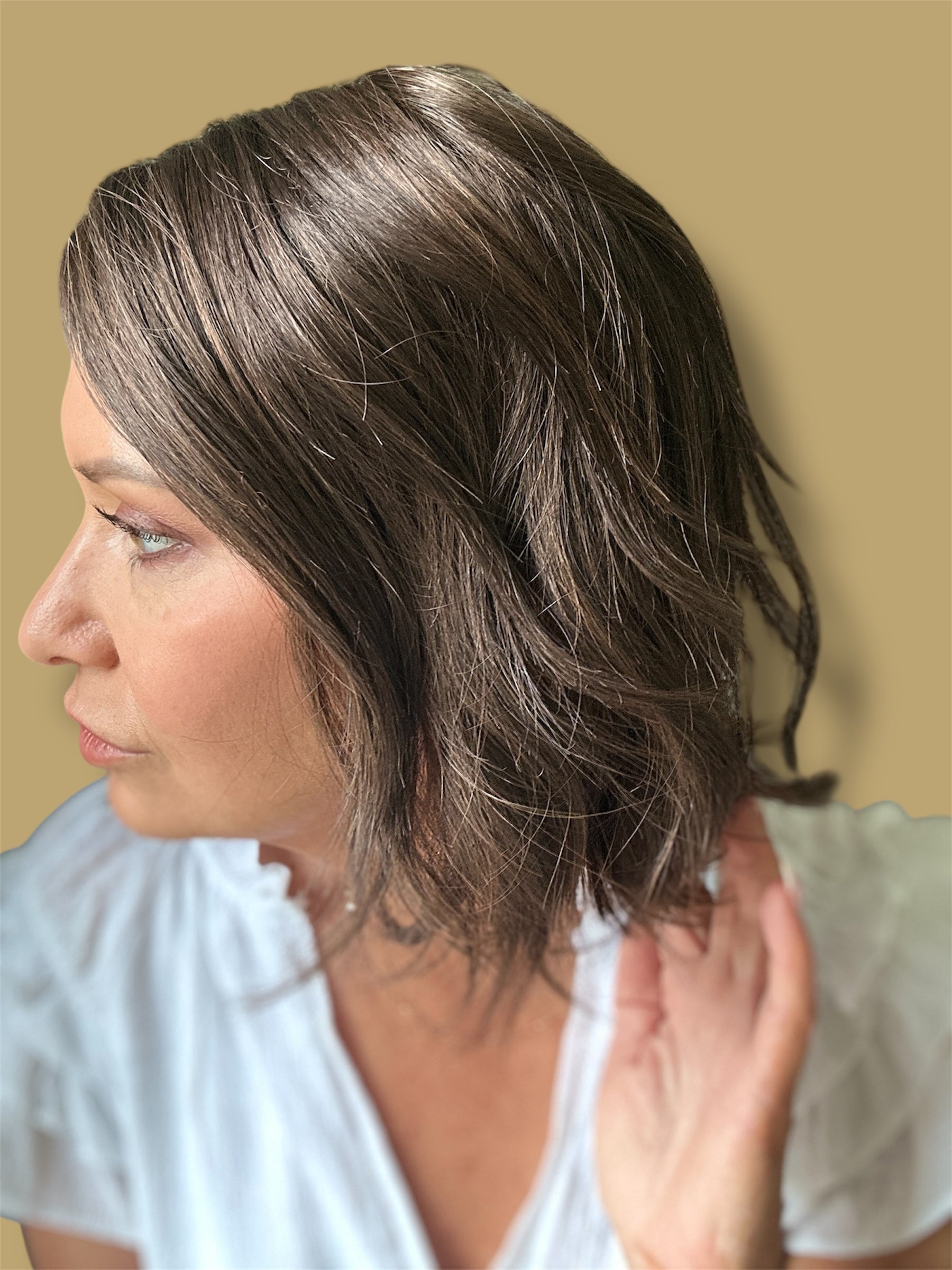 Esprit by Ellen Wille is a short bob with soft, undone waves. Part of the Hair Society Collection, this trendy style has premium cap features, including an extended lace front, monofilament part, and partially hand tied cap.