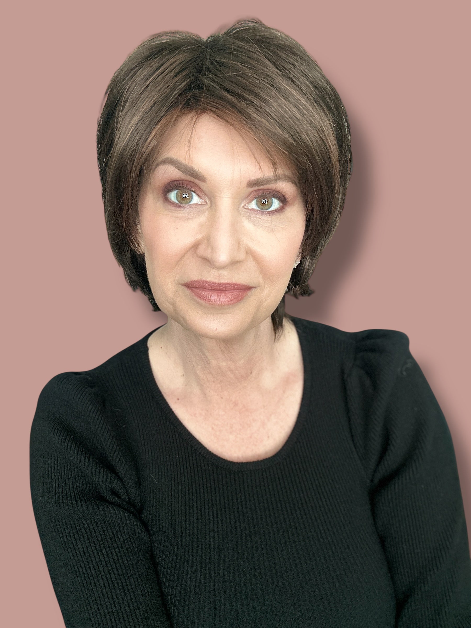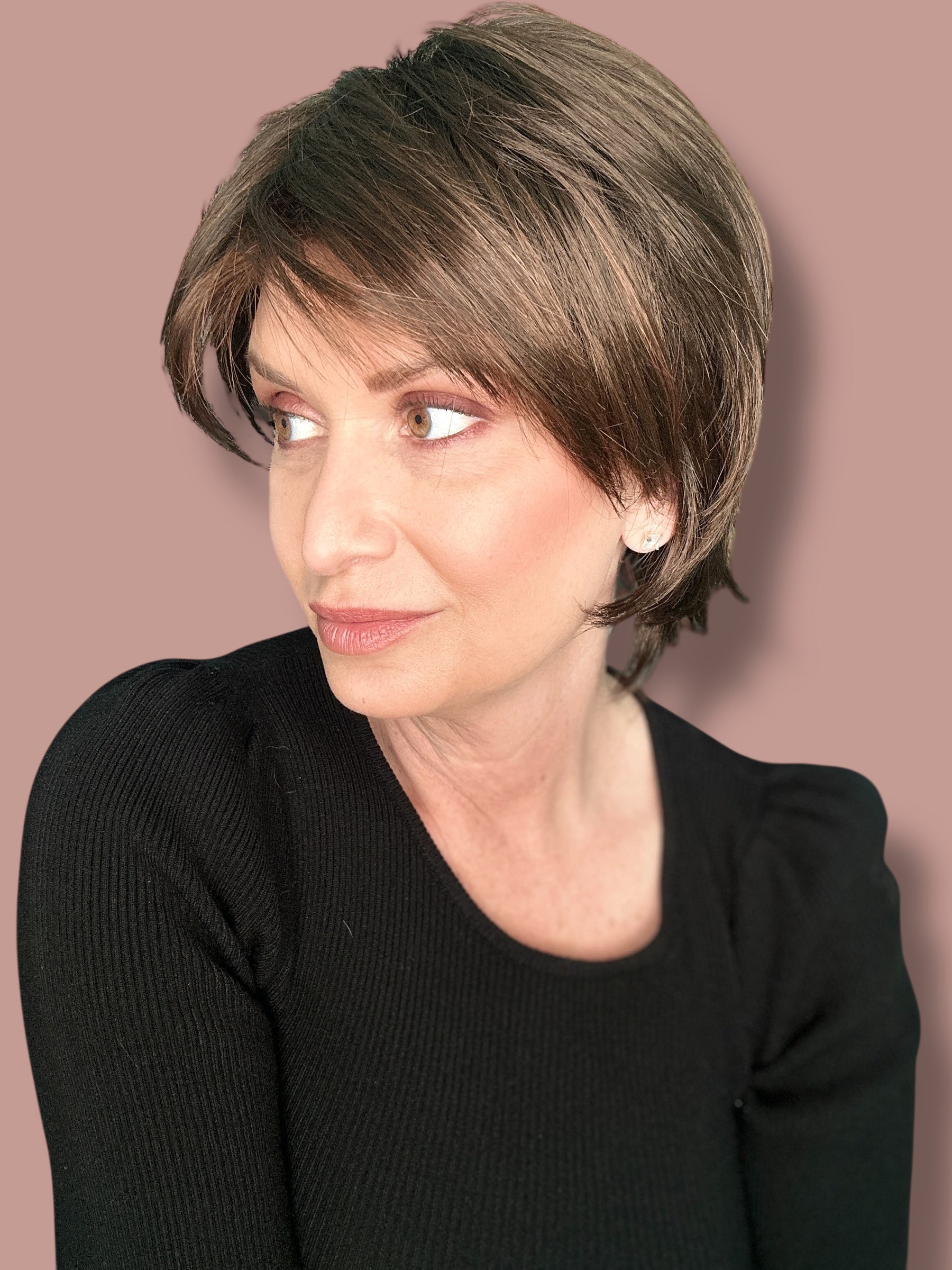 Sky by Noriko in the color Ginger Brown. Pre-loved wig that was worn one time.