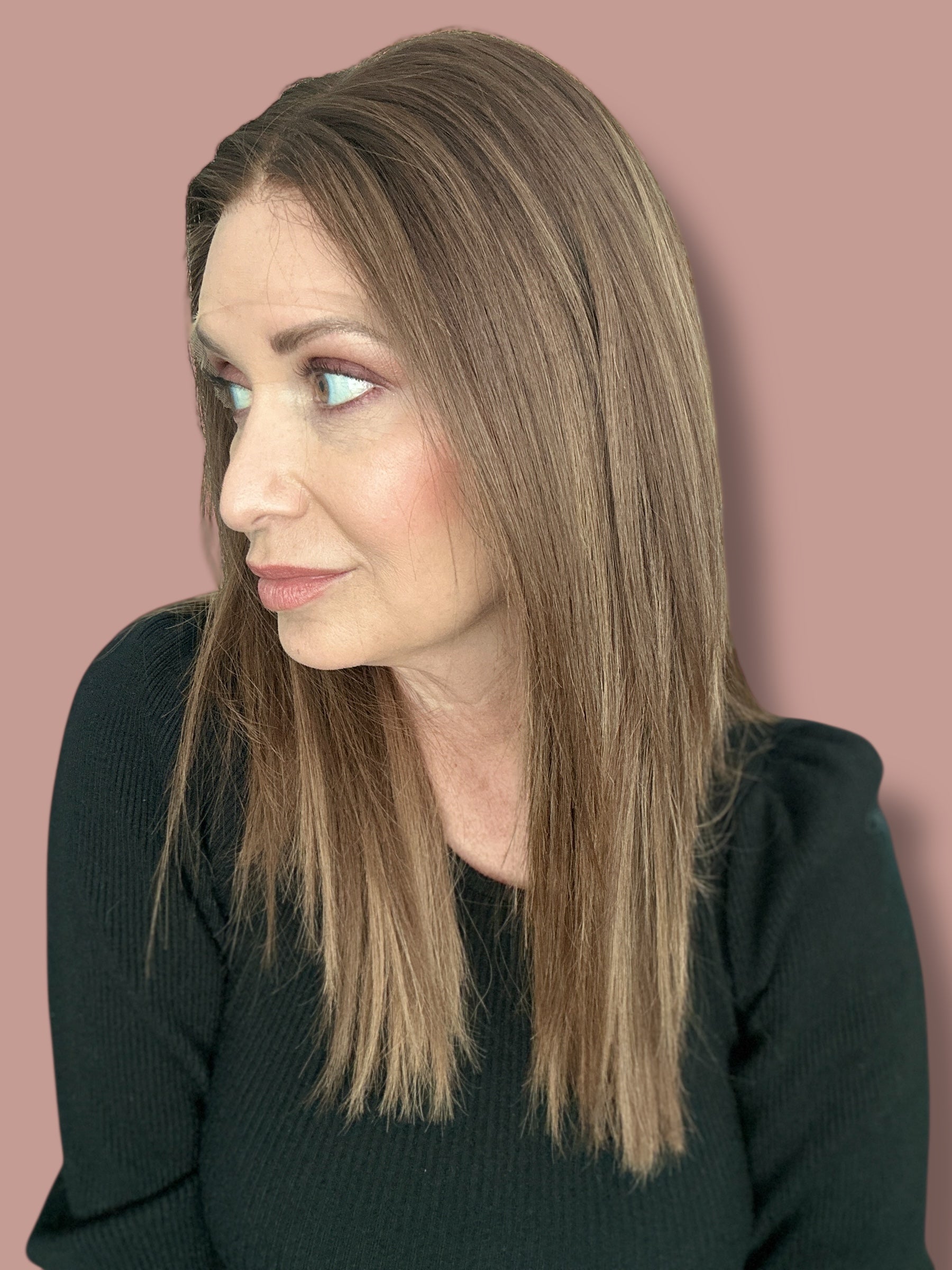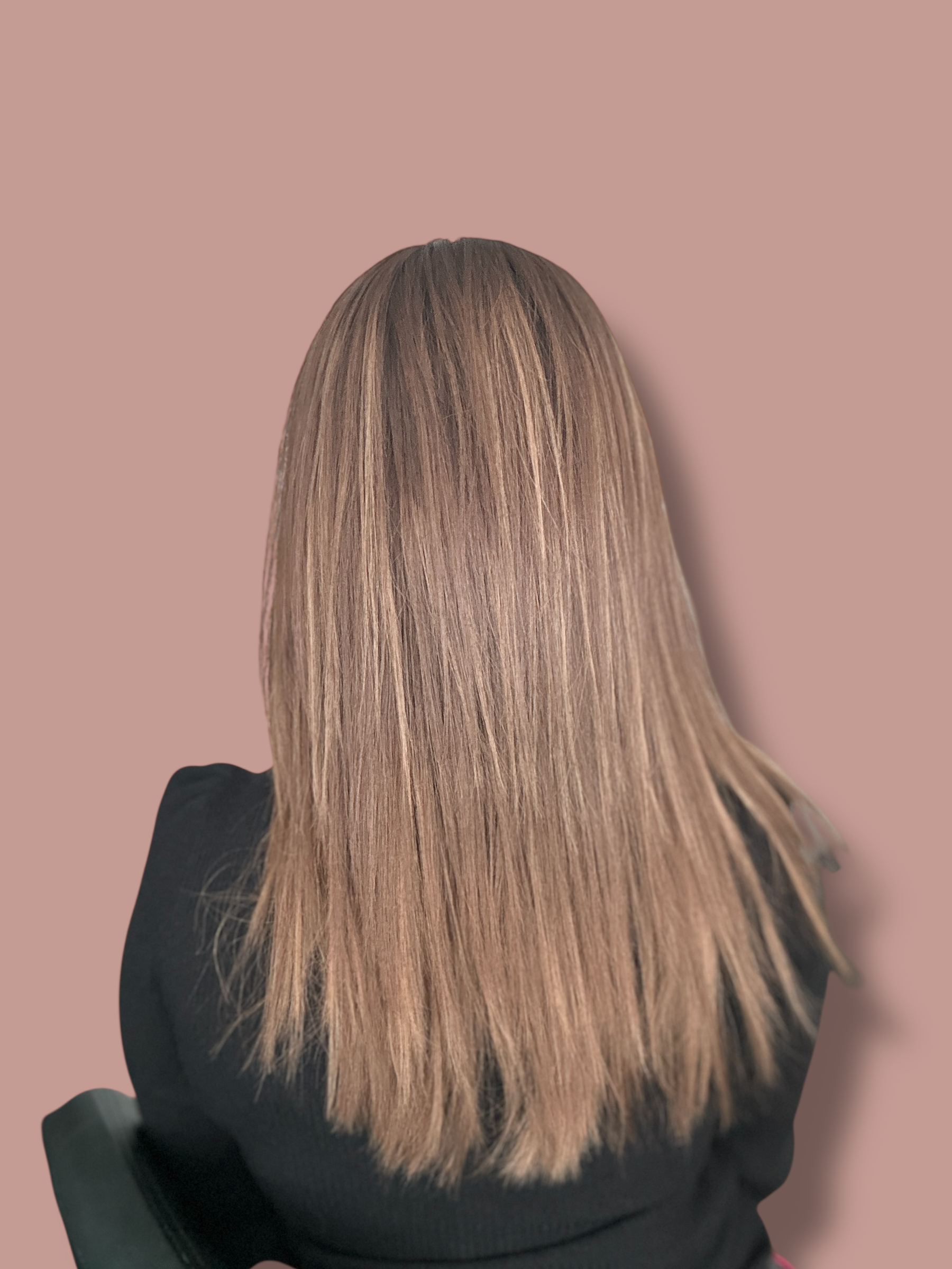 Level: Level 5/6 Base with Level 7/8 Subtle Balayage (Level Scale- level 1 is darkest black; level 10 is lightest blonde)